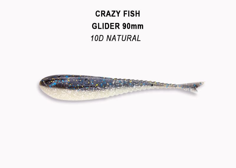 Crazy fish Glider — слаг, который своей формой напоминает естественный объект охоты хищника — живую рыбку. Длина силиконовой приманки — 9 см, вес — 3.1 грамм, в пачке 8 штук.