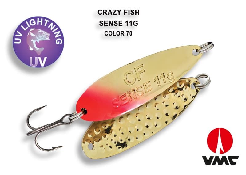 Crazy Fish Sense — колеблющаяся блесна весом 11 грамм с относительно широки телом и размашистой низкоамплитудной игрой. Это позволяет делать медленные проводки и хорошо собирать рыбу с более дальних дистанций. На падении блесна привлекательно «осыпается», поэтому равномерные проводки очень полезно чередовать с паузами, которые могут быть либо просто сбоем приманки и коротеньким падением, либо давать приманке сыпаться до самого дна.