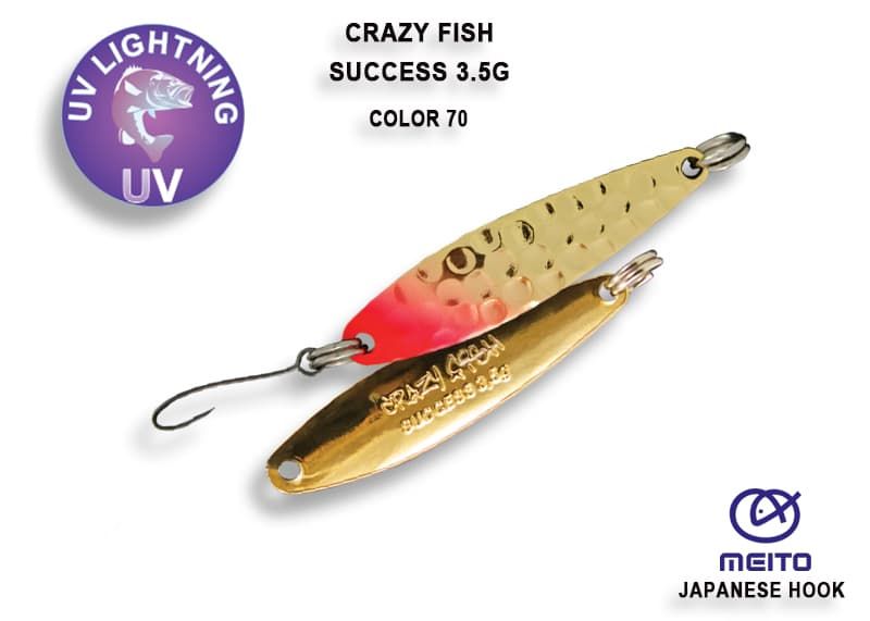 Эта узкая блесна весом 3.5 грамма с рефлением на поверхности имитирует основную кормовую базу хищника — малька сеголетка. Тело узкое и при этом относительно толстое, а значит, чтобы задать ей правильную игру необходимо вывести колебалку на нужную скорость. Размашистые колебания уже будут делать своё дело, соблазняя хищника, но для большего эффекта чередуйте проводку с паузами и подтвичиванием. Игра на падении и прочёсывание разных горизонтов воды за одну проводку даёт максимальный результат. Success подходит для ловли щуки, жереха, голавля и окуня.