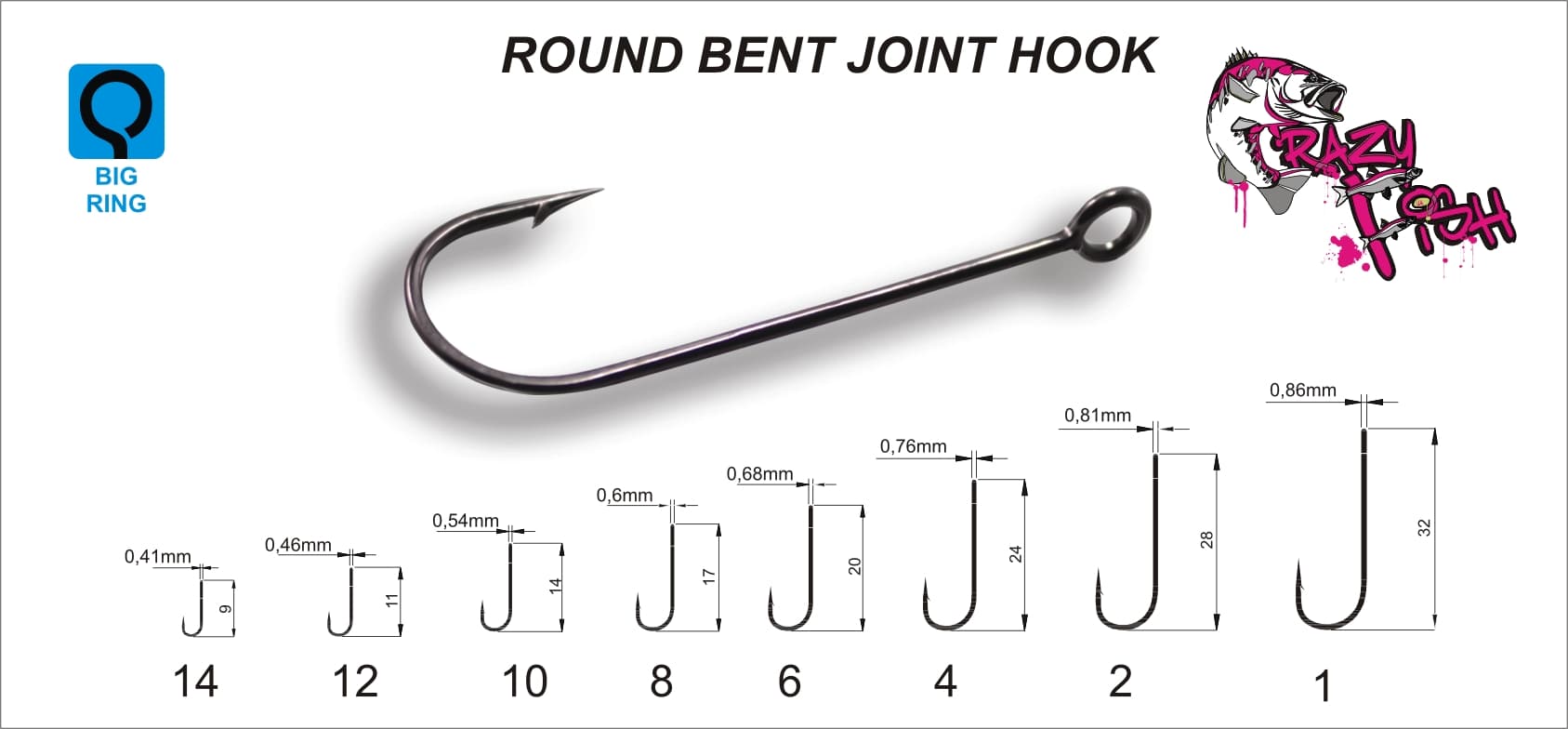 Одинарные крючки Crazy Fish Round Bent Joint Hook разработаны специально для мягких приманок Crazy Fish, поэтому размеры крючков идеально подходят под все размеры приманок. Особенностью этого крючка является большое ушко. С ним крючок лучше сочетается с шарнирными грузилами. В этой модели есть экстремально маленькие крючки, предназначенные для ловли на наноприманки.
